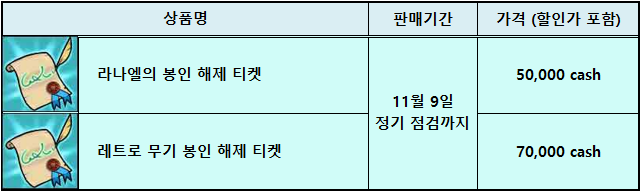 봉인 해제 티켓 2종에 대해서도 확인하시어 상품의 이용 및 구매에 차질이 없으시길 바랍니다.