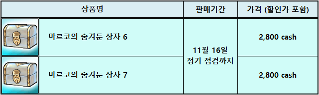 ※ 11월 2일 신규 판매 상품 목록