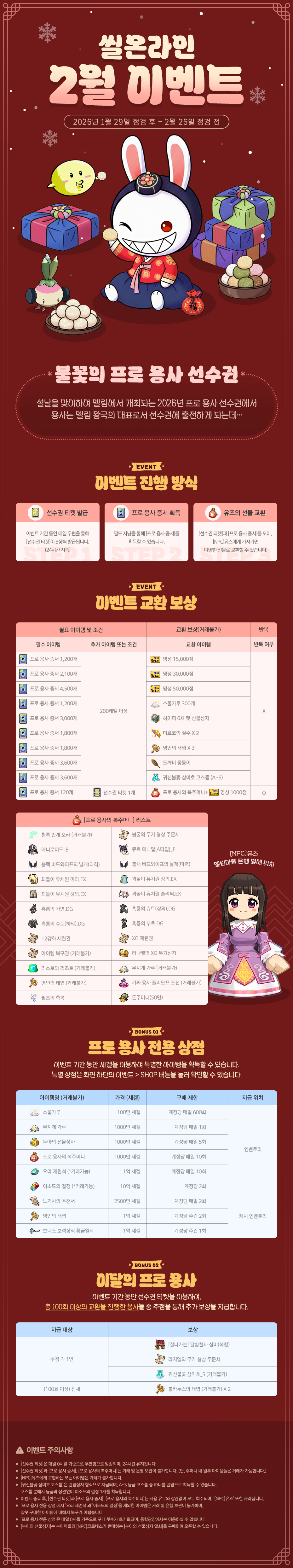 각 이벤트의 내용과 기간, 참여 조건은 씰온라인 홈페이지의 해당 이벤트 페이지를 통해 확인해 주시기 바랍니다.