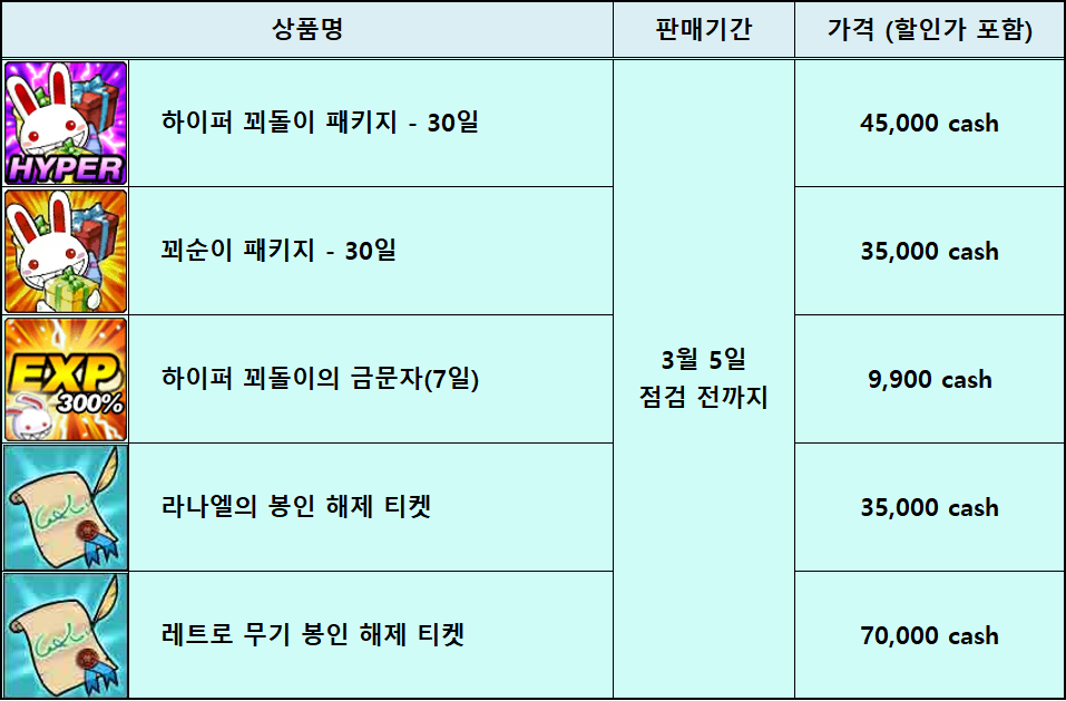 새롭게 판매되는 캐시 상품에 많은 관심과 이용을 바랍니다.