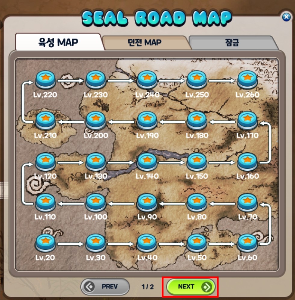 - 육성 맵 하단의 NEXT 버튼을 클릭하여 다음 레벨의 육성 맵을 확인하실 수 있습니다.